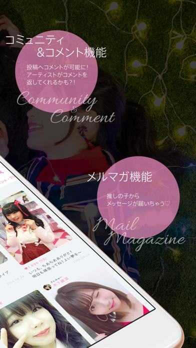 コミュニティ機能によって、アーティストやほかのファンとの交流が可能。この機能では、アーティストの投稿に対してコメントを返せます。アーティストと直接つながれる特別感と併せて、ほかのファンと交流する楽しみも味わえますよ。