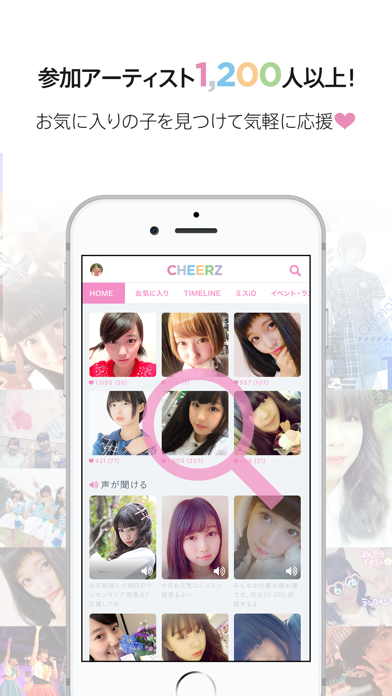 アーティストの投稿をリアルタイムでチェックできます。そしてその投稿に対して「CHEER!」を送ることが可能。より多く「CHEER!」を送るとアーティストのファンランキングが上昇するため、自分の応援が推しの人気に影響を与えることを実感できるでしょう。