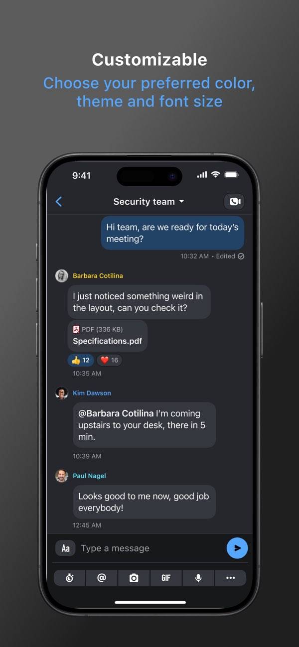 安全で効率的なコミュニケーションを行えるメッセージアプリです。プライベート通話・グループチャット・顧客とのやりとりなどを本アプリひとつで可能。またセキュリティ面も万全で、メッセージの表示時間を決められたりFace IDによる認証を行えたりと、第三者への情報漏洩のリスクを防げます。