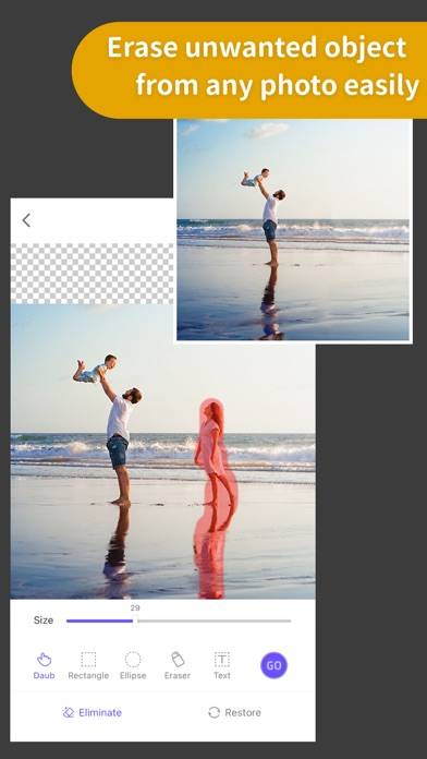 消したいものがある場合は、消しゴムでなぞると消してくれます。大きいものでも綺麗に消してくれるため、使い勝手がいいでしょう。拡大鏡もあるため、境界線も綺麗に調整できます。