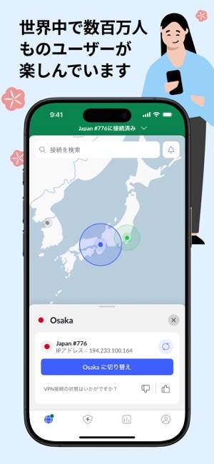 多数の国にサーバーを持っているVPNアプリです。利用には課金が必要ですが、通信はかなり安定しています。マップからの接続先選択も可能。またNordLynx VPNプロトコルにより、高いセキュリティレベルを実現しています。