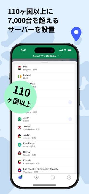 - 110ヶ国以上、7,000以上のサーバーに接続できる安全なVPN