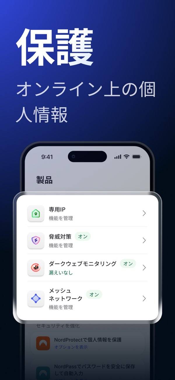 「NordVPN」は、VPNサービスだけでなく、サイバーセキュリティを強化する機能も提供しています。