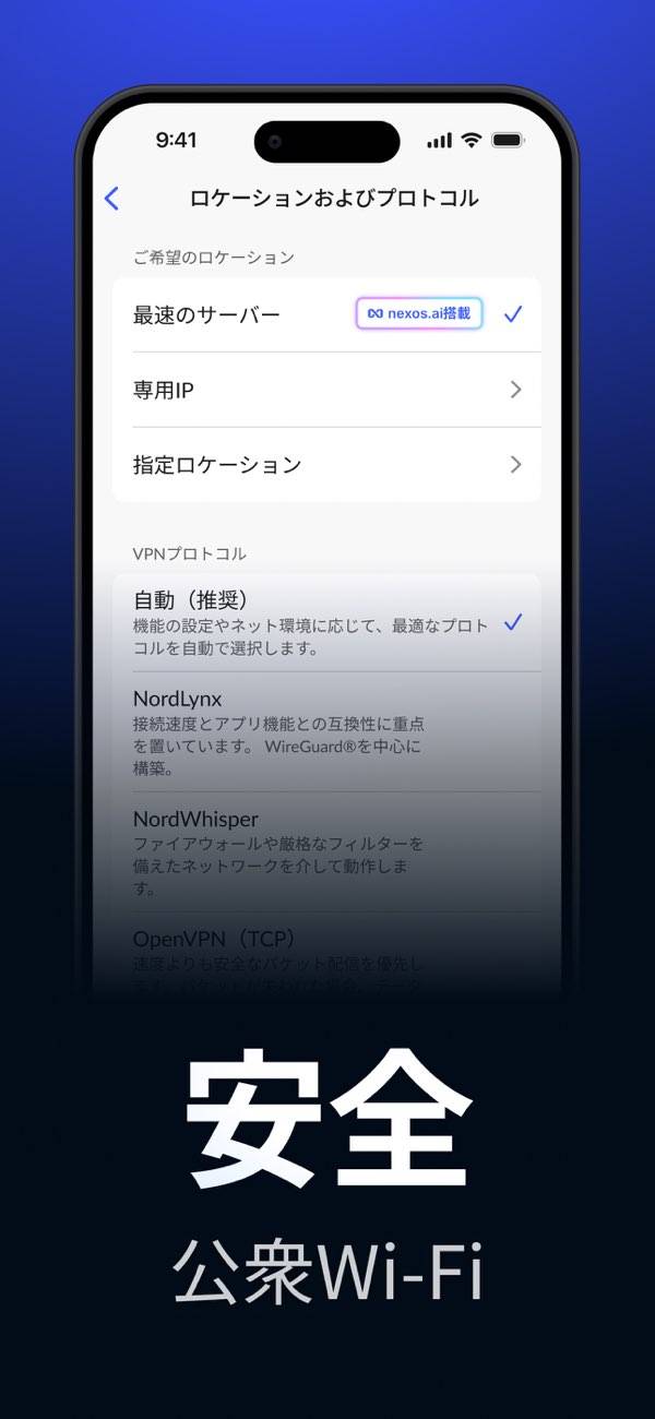 多数の国にサーバーを持っているVPNアプリです。利用には課金が必要ですが、通信はかなり安定しています。マップからの接続先選択も可能。またNordLynx VPNプロトコルにより、高いセキュリティレベルを実現しています。