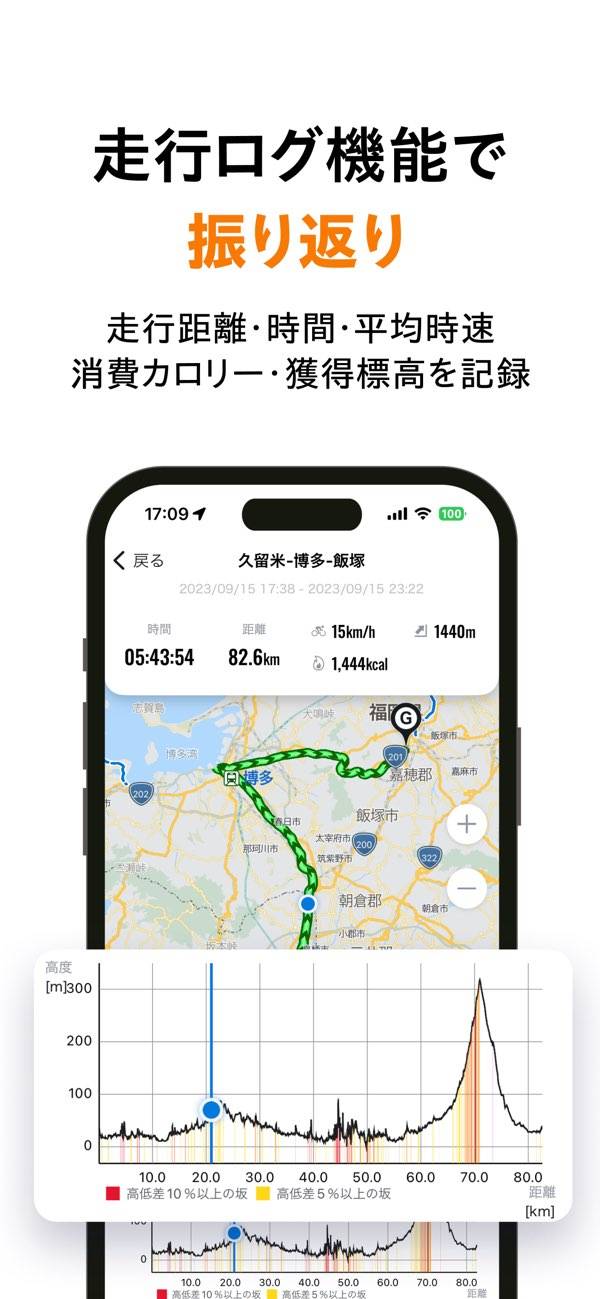 - ルートや距離など走行の記録が可能。サイクリング後の振り返りに便利