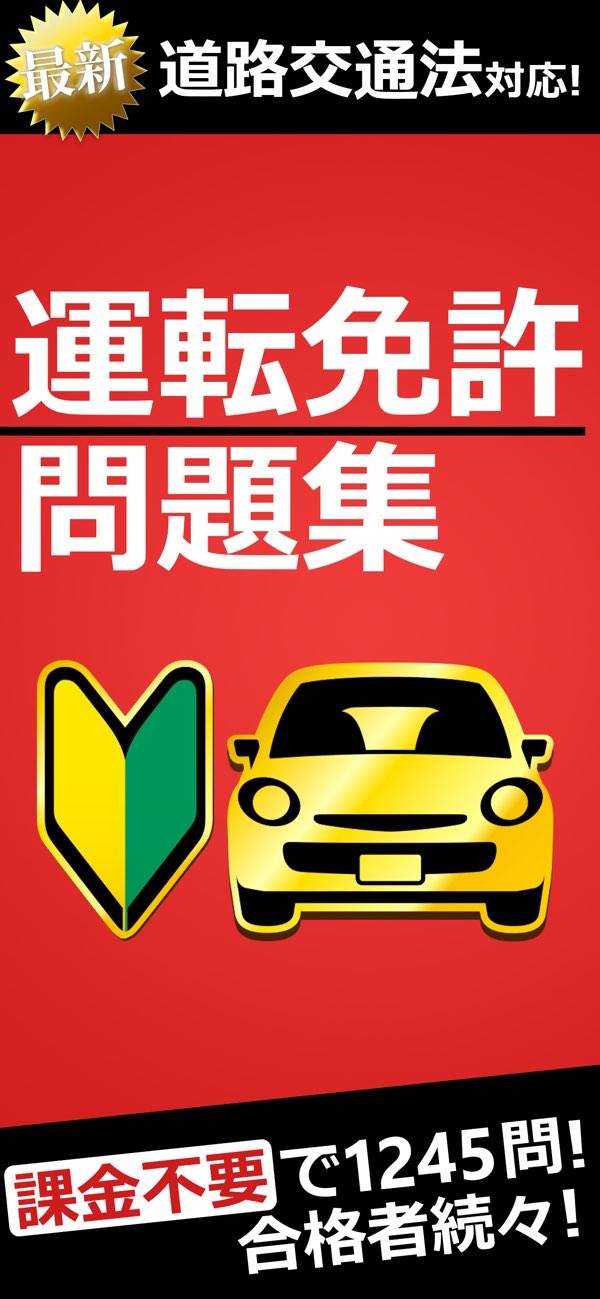 本番と同じ二択方式で学習できる普通自動車免許試験の問題集アプリ。紙の参考書と違い、いつでもどこでも勉強できます。間違えた問題をチェックしておける機能もあり、苦手克服に効果的。標識などのイラスト問題にも対応しています。