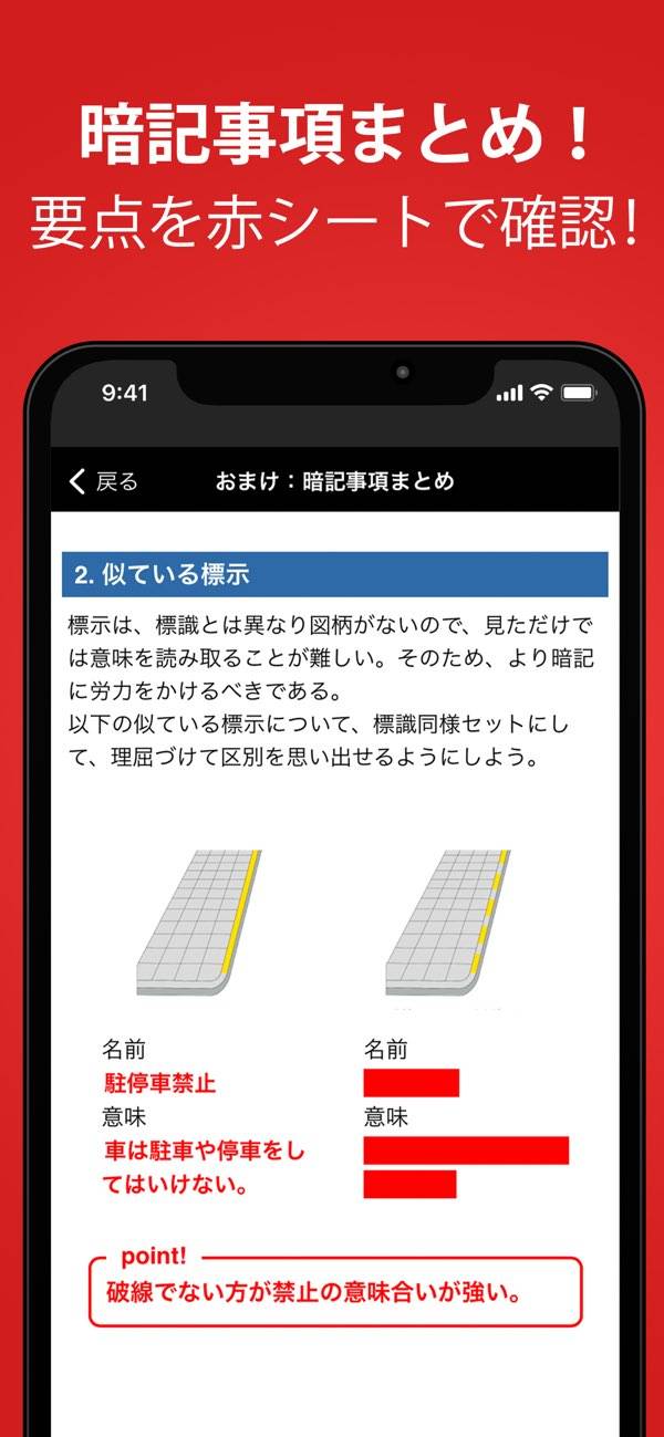 - 間違えた問題をチェック。苦手を無くせば免許取得に大きく近づく