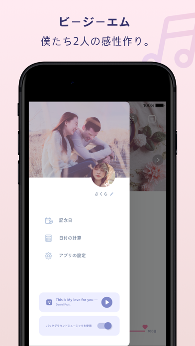 ただ単に付き合ってからの日数を数えるだけのやつ。背景を変えることができるのがいい。また、アプリにロックをかけられるのが珍しい。1年以上このアプリを使っている。