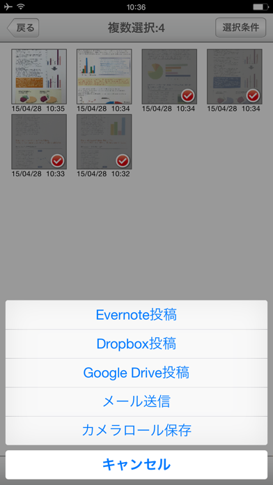 撮影した書類をまとめてメールで送信することも。また、クラウドサービスにも共有可能です。メールで送信する際は、zipファイルで送ることもできるので、枚数が多くても問題ありません。原本がなくなるリスクも抑えられるで、安心して書類を持ち出せます。