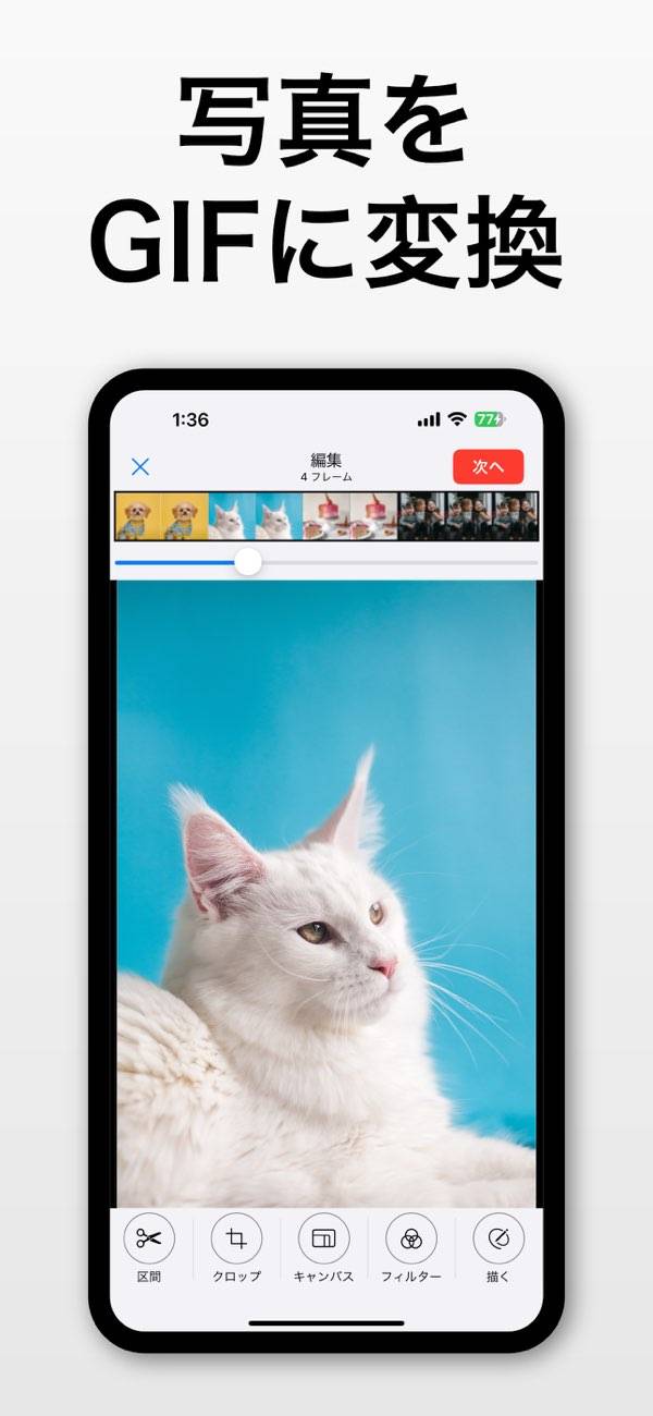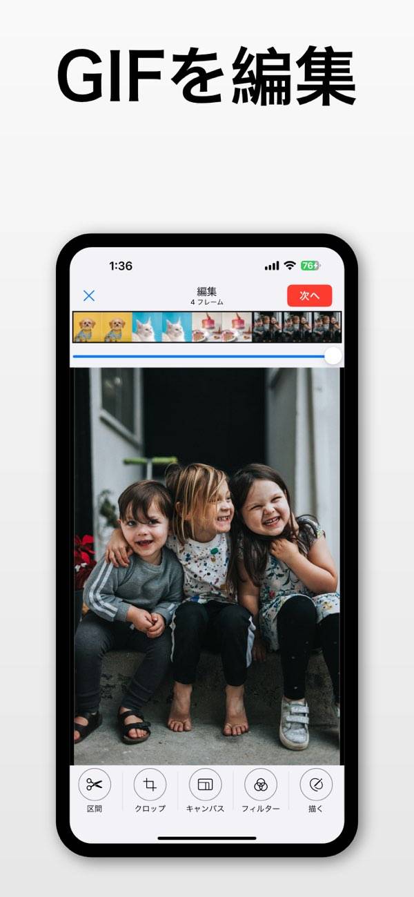- 動画や写真をGIFに変換。スマホだけで全作業を完結できる