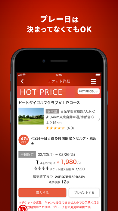 - 日本全国のゴルフ場を簡単予約できるチケット販売アプリ