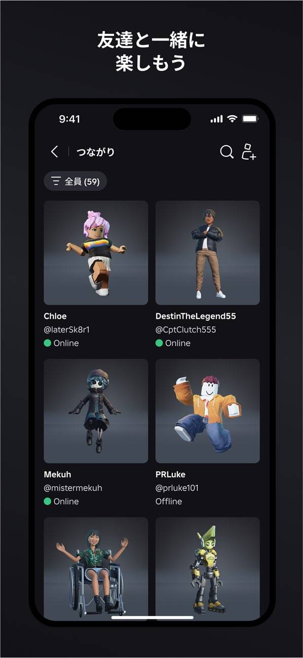 世界中のユーザーが一緒になって遊べるオープンワールドゲーム。何百万人ものプレイヤーと一緒に、数千種類ものフィールドが広がる世界を冒険したり、自分だけのスタイルでアバターをカスタマイズしたりできます。自由度が高く、チャットやリアクション機能が使えるため、同じワールドにいる人達との交流もしやすくなっています。
