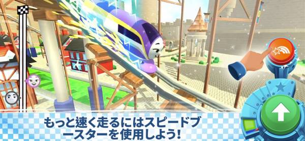 ボタンをタッチしてトーマス加速させてレースするゲーム。