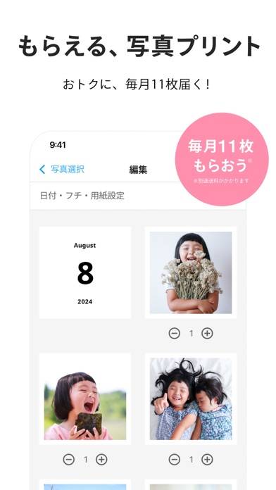 - 11枚の写真プリントが毎月無料でもらえるので、アルバム作りもしやすい