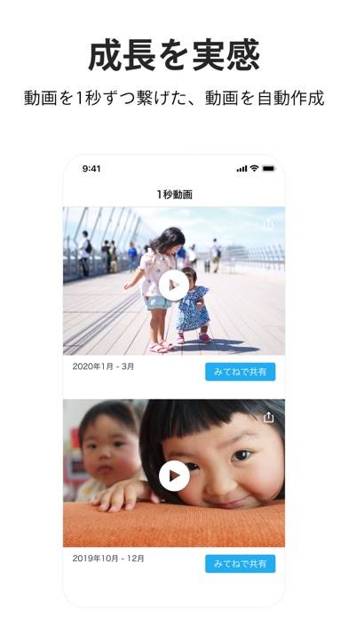 - 子どもの成長を自動でまとめた1秒動画が見られ、思い出が振り返り