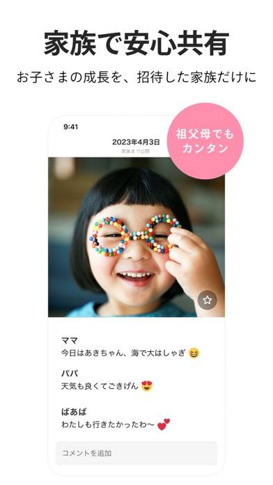 大切な子供の想い出…いつでも家族みんなで共有したいですよね。このアプリはその願いを叶えてくれます!招待すれば親戚にも共有してみれます。写真をアップロードしても写真を撮った月順に並べ替えてくれて歳月を追えるように見れますよ!SNSのように他人に見られることはないので安心です。