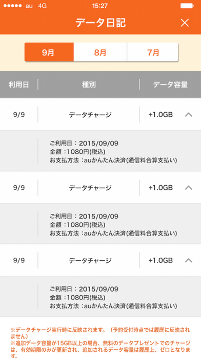 au専用のデータチャージアプリ。通信容量がなくなって、早くデータをチャージしたい時に見つけた。それからはなくなる度にお世話になっているけれど、確かにウェブよりは全然手続き早いけれど、それでもデータがない時点での読み込みが遅くて涙目?