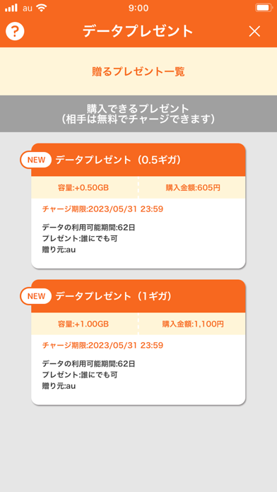 - データ通信量の追加購入が可能。ほかのユーザーにプレゼントもできる