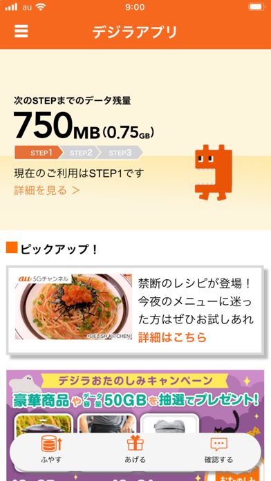 デジラがデータ通信量の残りをお知らせ データの買い足しもOK