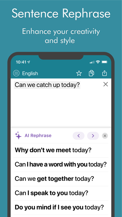 “Rephrase”機能を使えば、文章の違った言い回しを検索できます。一箇所だけでなく、主語や述語など各部分の言い換えを表示。同じような意味でもより適切なニュアンスを探し、魅力的な文章や丁寧な文章を作成できるでしょう。