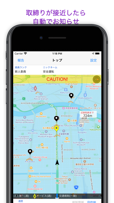 - 取り締まりが行われている地点に近づくと、アラートでお知らせ