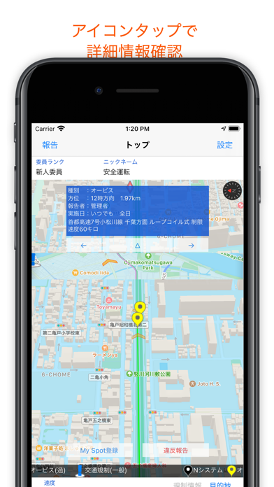 - スピード違反や飲酒検査等の取り締まり情報を検知できるマップアプリ