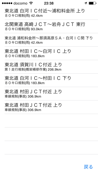 交通規制をリスト表示