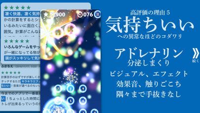 エフェクトがとても激しく爽快感抜群な計算ゲームです。計算力を鍛えるというよりかはゲームとして楽しむ要素が強い感じです。操作性も良くノリノリな音楽も楽しいです!ちょっとした脳トレゲームをする時に遊んでいます。