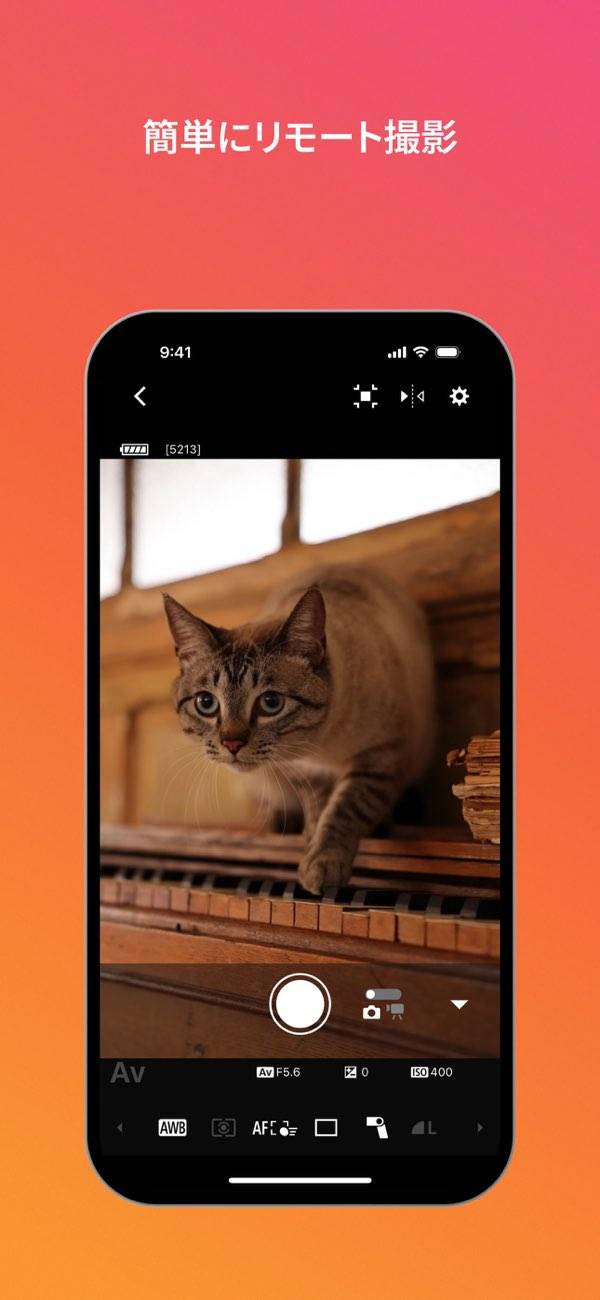 スマホでカメラのシャッターを切れる“リモートライブビュー撮影”機能も。三脚を使うときや、シャッターボタンを押しづらいときに便利です。どのような映りかもスマホで見られるため、ファインダーを覗き込まなくていいのもポイント。