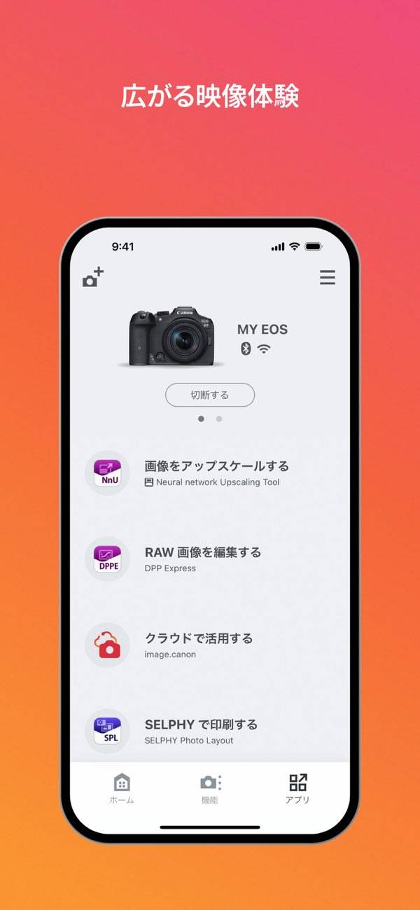 Canon(キャノン:本当は「ヤ」が大きい)のカメラと連動するアプリ。