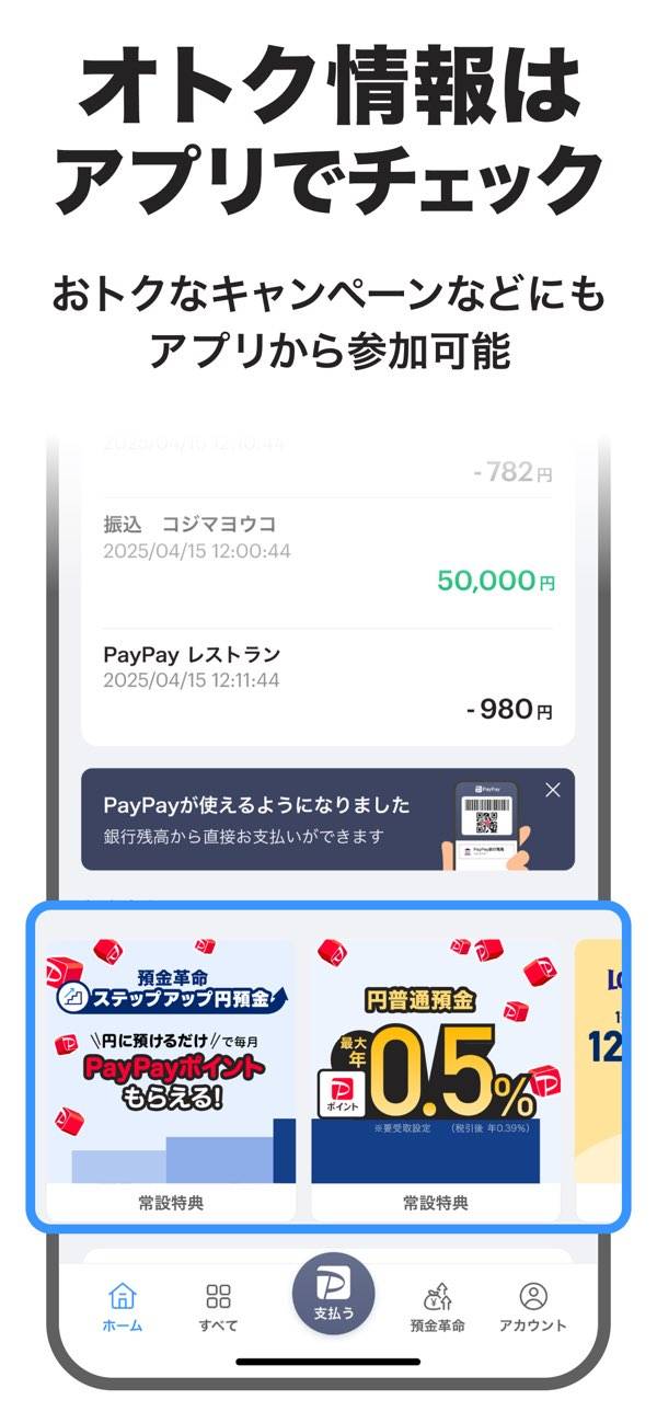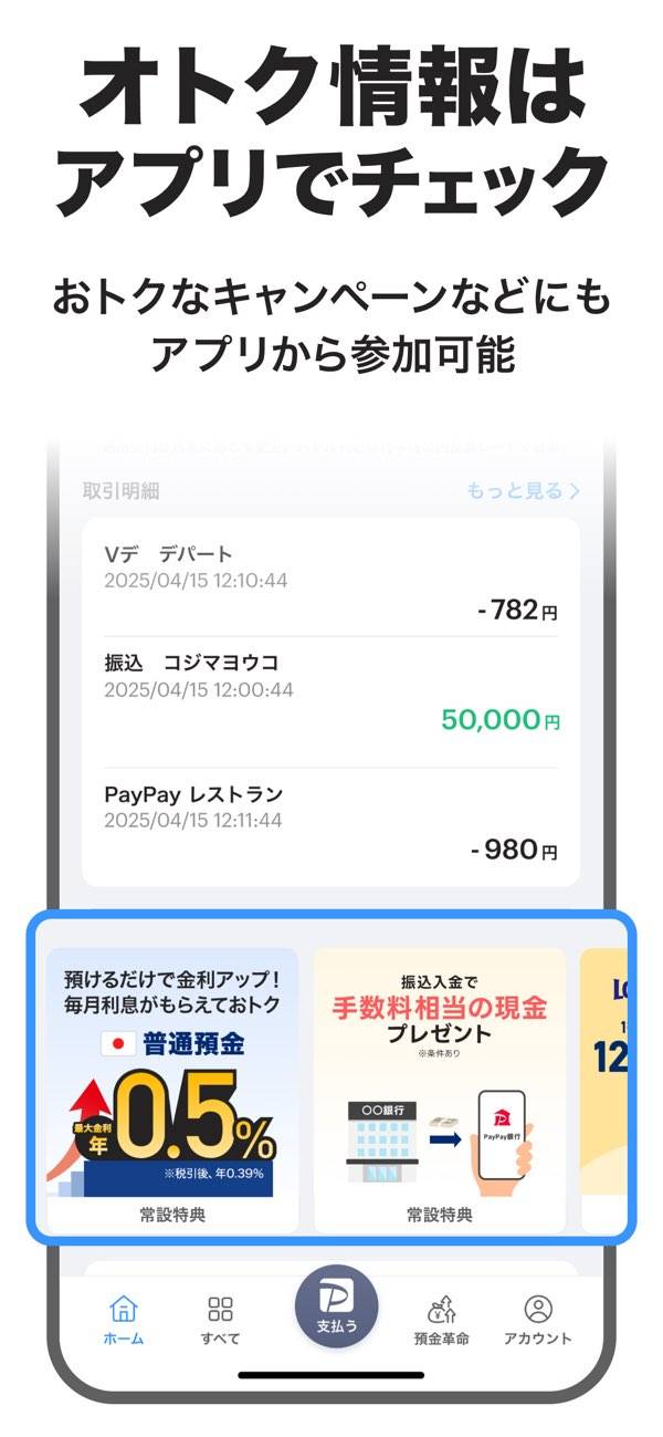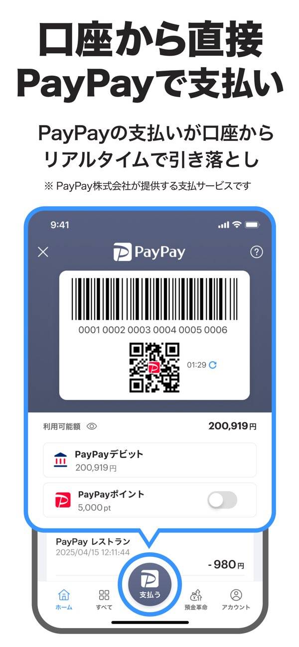 - 振込や口座情報の確認がスマホから行える、PayPay銀行公式アプリ