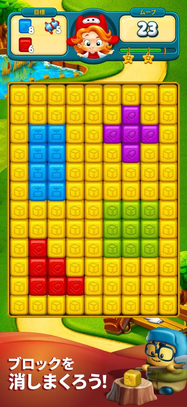 ブロックをまとめて消したときの爽快感がよい???ステージ数がすごく多くてやりごたえあるのも魅力的〜!イラストは少し子供っぽいですが、大人でも普通に楽しめるパズルゲームです(^O^)