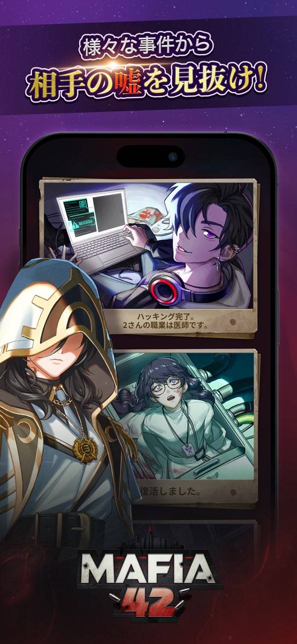 マフィアvs市民に分かれた心理戦ゲーム オンラインで多数の人と遊べる!