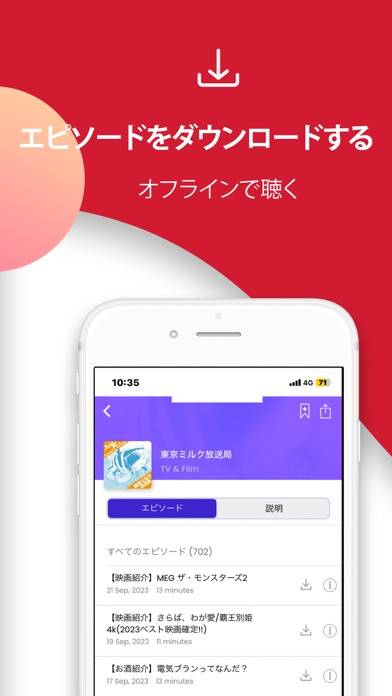 | オフライン再生 | ○(ポッドキャストのみ) |