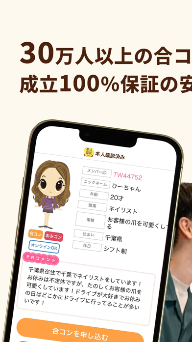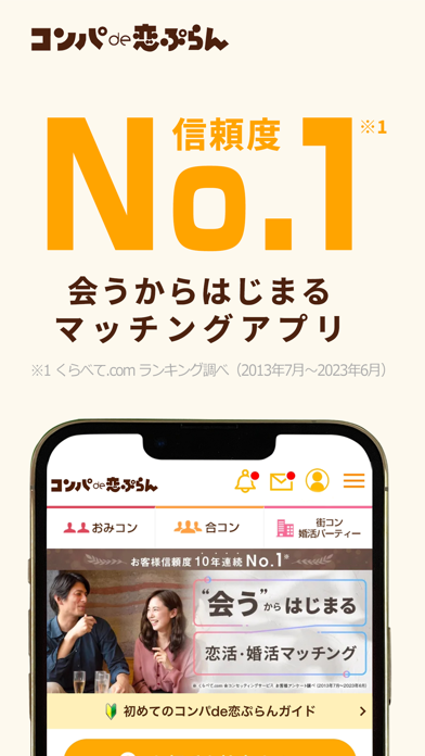 全国の多くのユーザーが利用する合コンセッティングサービス。専門のプランナーが理想の相手とのマッチングからスケジュール調整まで手がけ、手間いらずで合コンを楽しむことができます。気軽な友達作りから真剣な恋活・婚活まで、さまざまな出会いを求める方におすすめです。