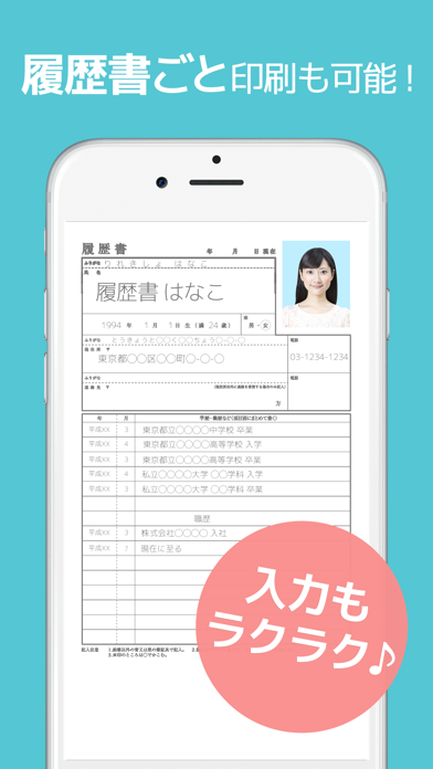- 証明写真つきの履歴書ごと印刷可能。入力もラクラク