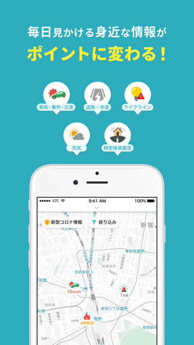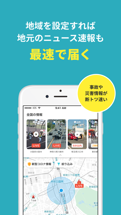 事件や地震などの情報をいち早く教えてくれるアプリです!
