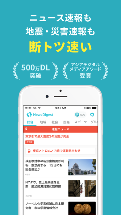 いろんな機能を兼ね備えたニュースアプリがたくさんありますが、ニュースダイジェストは速報に特化したニュースアプリ。いち早く情報を知りたいと思っている人にとって役に立ちそうですね。
