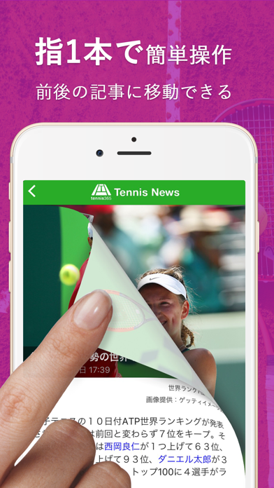 世界のテニス情報をリアルタイムで提供するアプリ。大会速報から最新のテニスアイテム情報まで、すべてが手元でチェックできます。ランキング情報も毎週更新。最新の試合結果を知ることができ、気に入っている選手の戦績を追うことができます。