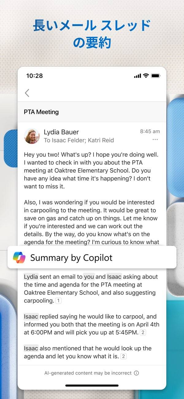 - 優先度順にメールを表示。予定や連絡先でキーワード検索できる