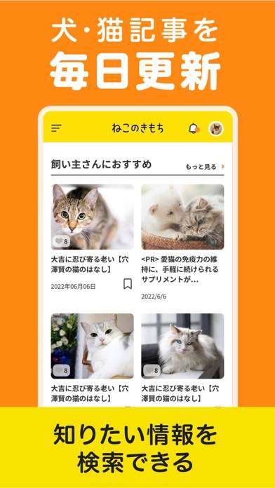 アプリでは、「しつけ」や「飼い方」についてのオリジナル記事が毎日更新されます。カテゴリ別やキーワード検索機能もあり、飼い主が必要とする情報を簡単に探すことが可能です。これにより、ペットの適切な飼い方やしつけ方を学ぶことができます。