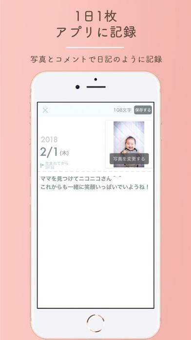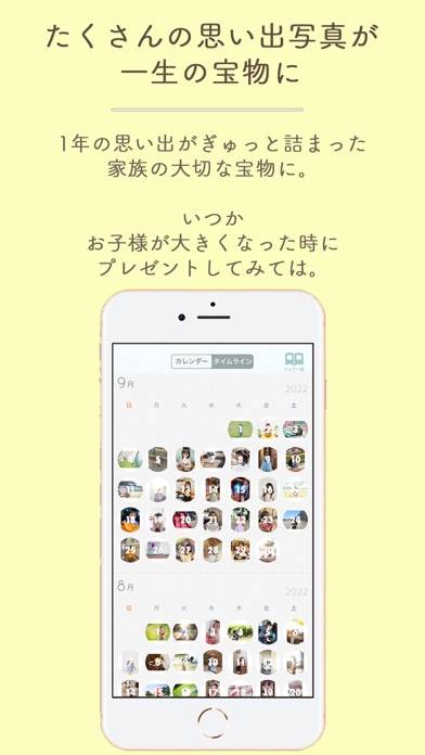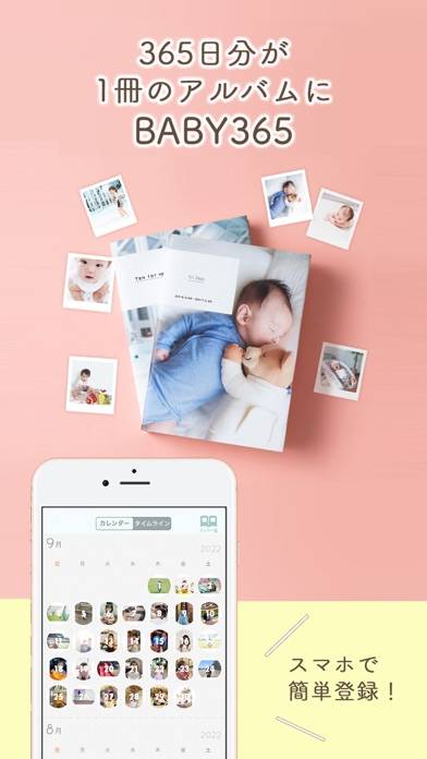 撮り溜めた赤ちゃんの写真をフォトブックにできるアプリ。101日分の写真が溜まったら、2万円ほどで製本できます。