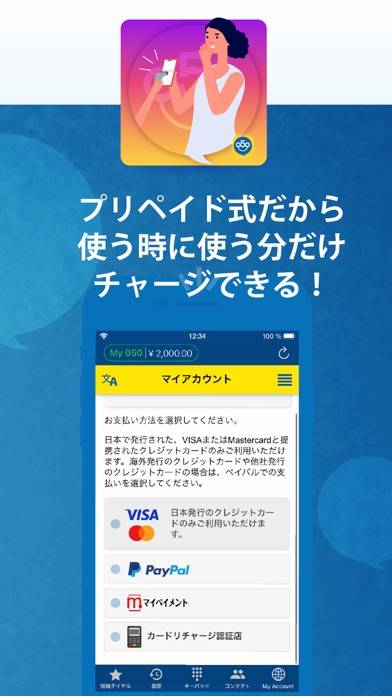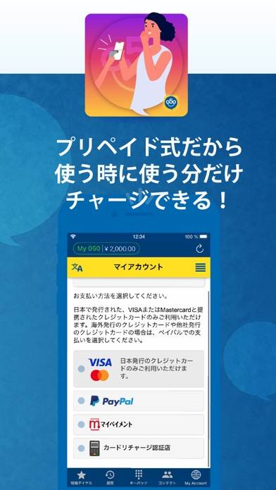 050から始まる電話番号は「My 050番号」から申込みができます。支払いにはクレジットカードやPayPalが利用可能。料金の支払いはチャージか自動リチャージが選べるようになっています。また料金表から地域ごとの通話料を調べられるのも便利です。