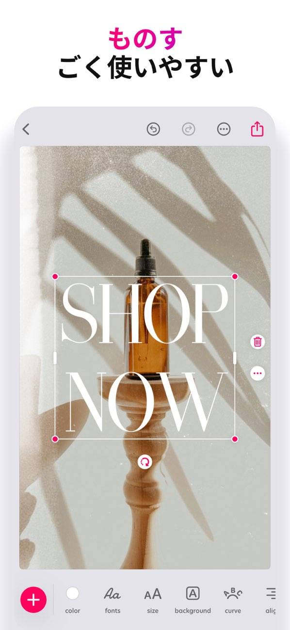 オシャレなテンプレートや背景素材もそろっており、素材を探す手間でさえも最小限。手軽に画像加工を楽しむには十分な使い心地です。