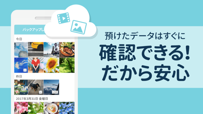 スマホのデータバックアップが手軽にできるアプリ。連絡先や写真、動画などさまざまなファイルの保存が可能です。定期的に通知でバックアップ状況をお知らせし、データ消失や機種変更時も安心。さらに、容量不足の悩みも解消できます。スマホが苦手な人でも、簡単に使いやすいですよ。
