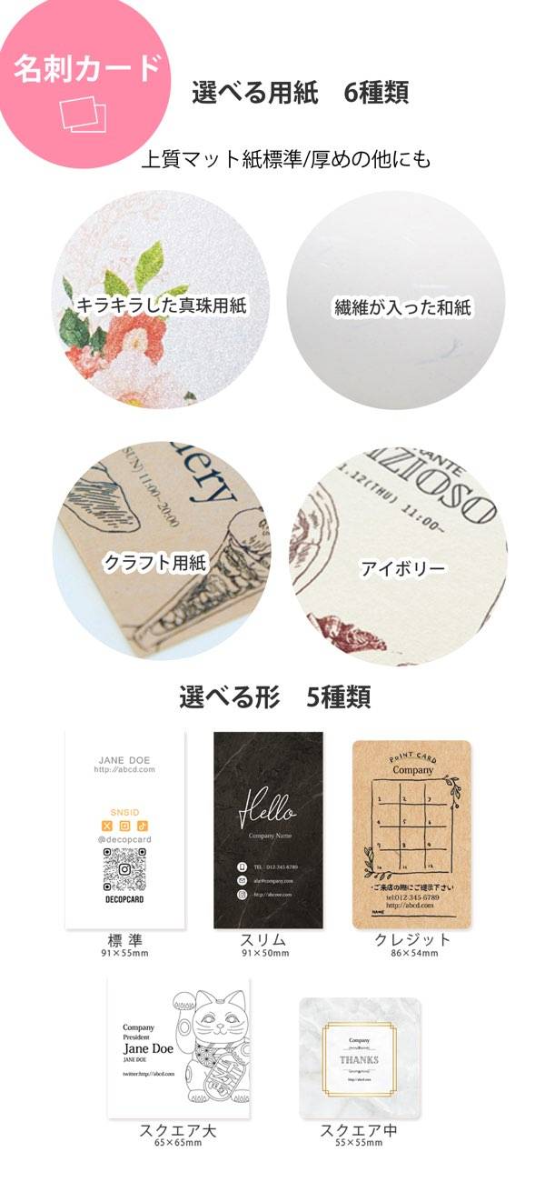 制作した名刺とシールを注文でき、料金表から詳しい値段が見られます。注文する枚数が多いと割引されることもあるのでお得です。また用紙の種類も選べるので、こだわりの名刺が作れるでしょう。