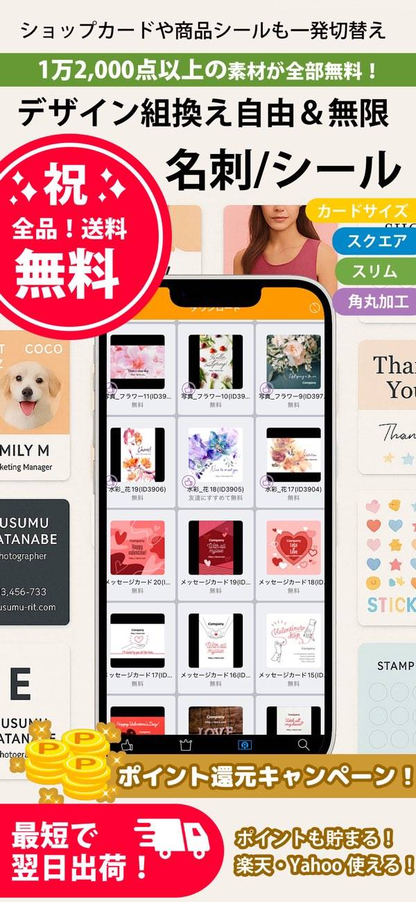 名刺作成アプリの中で一番よかったです!自由度も凄くて、とにかくオリジナルが安く作れますね。そしてそもそも悪いレビューがない。届いた名刺もとっても高級感あってよかったですし、デザインもとてもお洒落で豊富。名刺だけでなく、ポイントカードやショップカードなど何でも作れます。コスプレ名刺も。。。また紙の厚さも選べるのでGOODです。