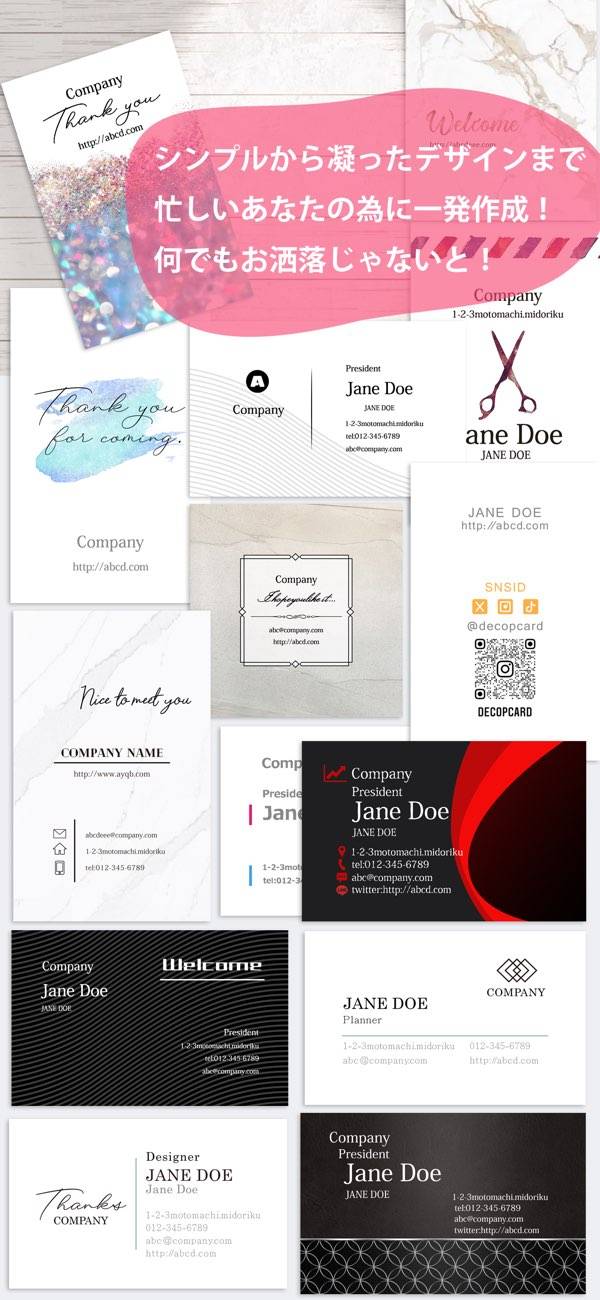シンプルかつおしゃれな名刺が作れる