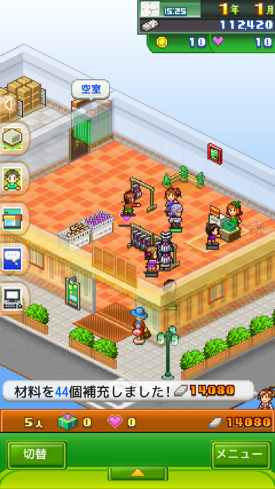 スタッフを教育することで売り上げアップにつながります。知育本などのアイテムを使って経験値を与え、スタッフをレベルアップ。心強い精鋭を揃えて経営していくことで、どんどん彼らへの愛着も湧いてくるでしょう。
