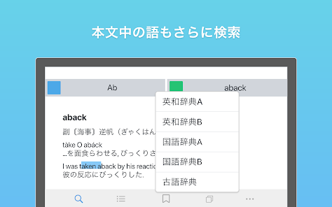 - 使いやすく設計された辞書アプリ。英和、和英、国語、漢字辞典など収録